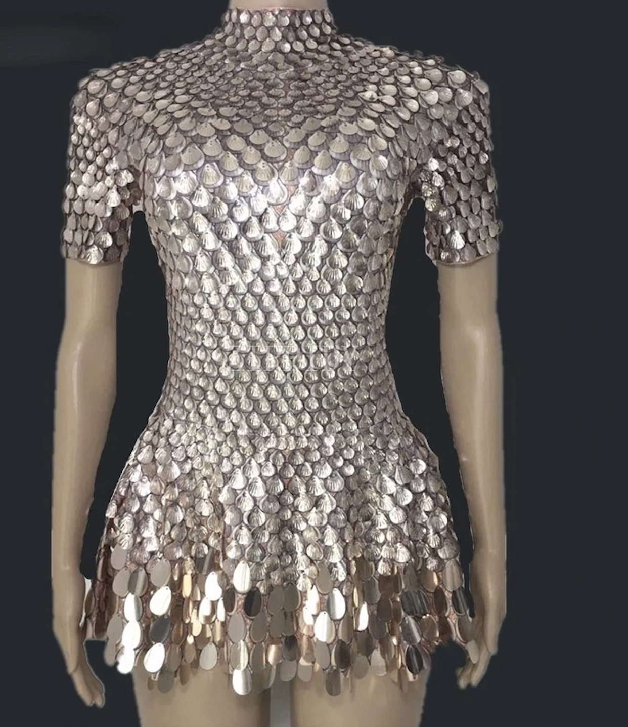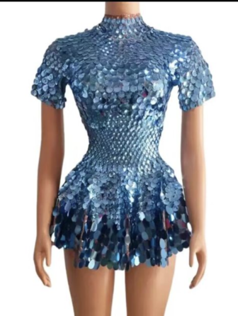 Nightclub Leotard Shining Lovely Sequins Mini Dress Costume