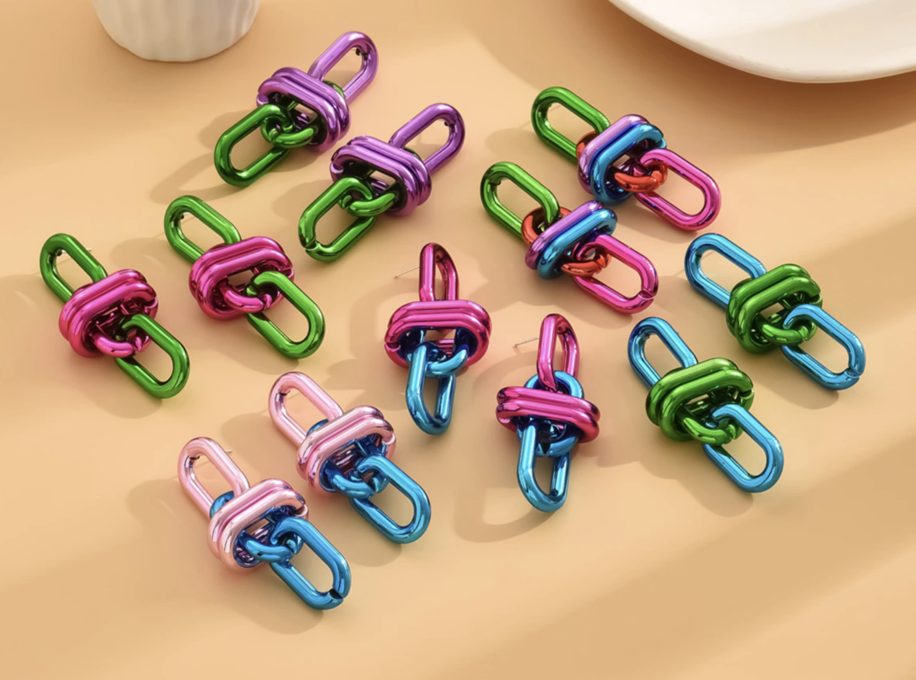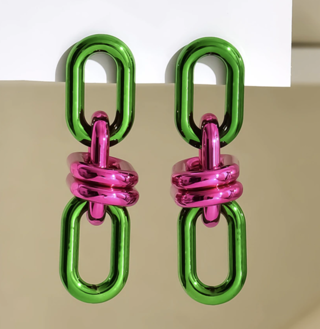 Vintage Acrylic Geometric Chain Long Drop Earrings