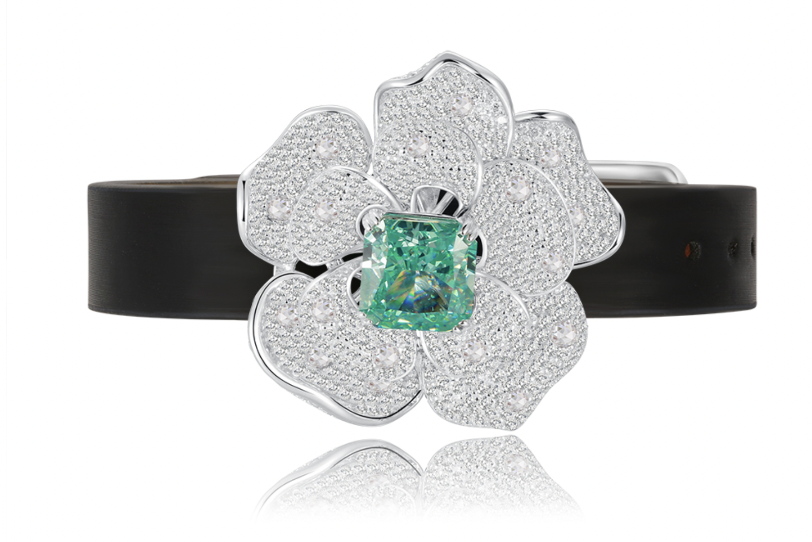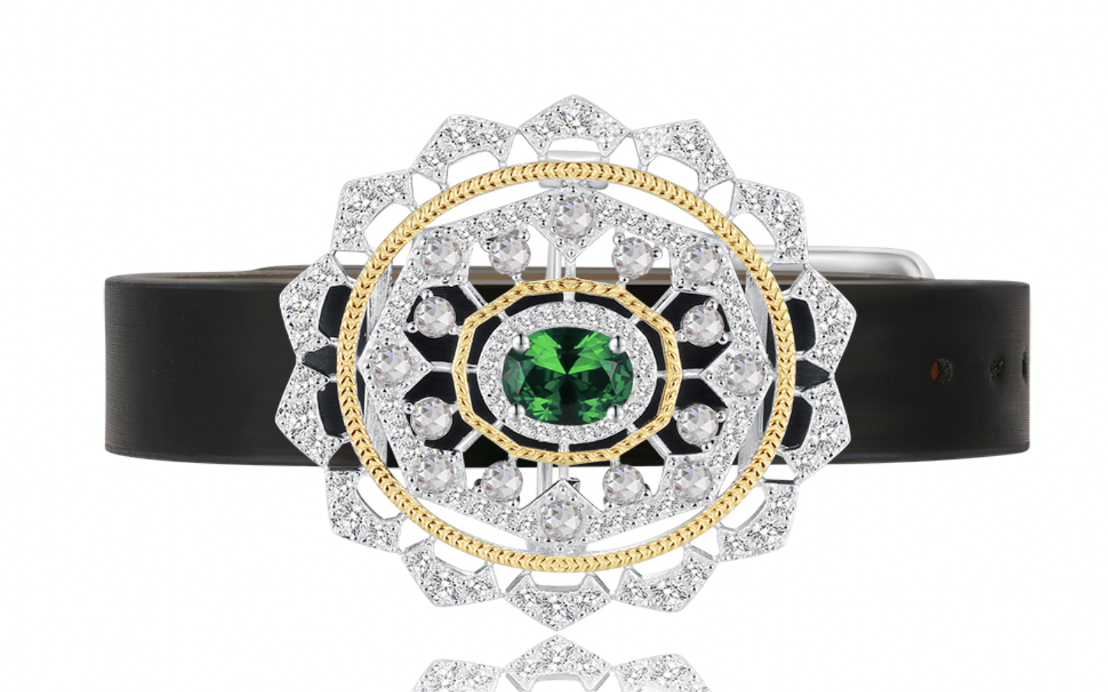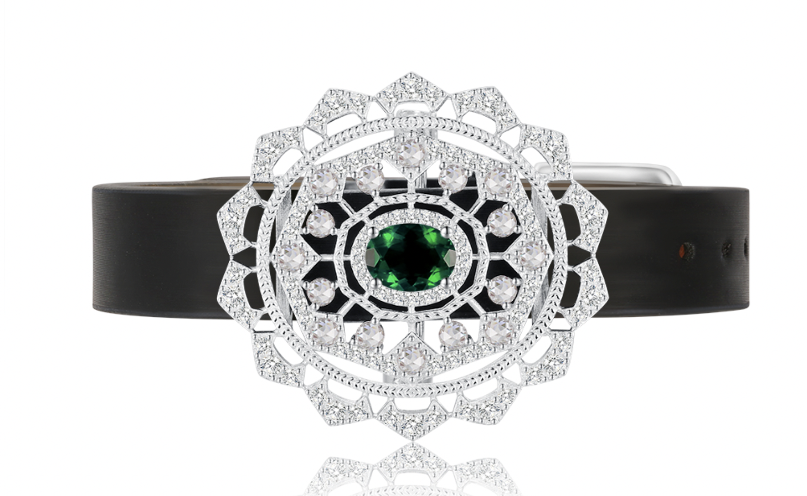 925 Sterling Silver Lab Sapphire Emerald Ruby Gemstone Cowhide Belt Bracelets Bangle