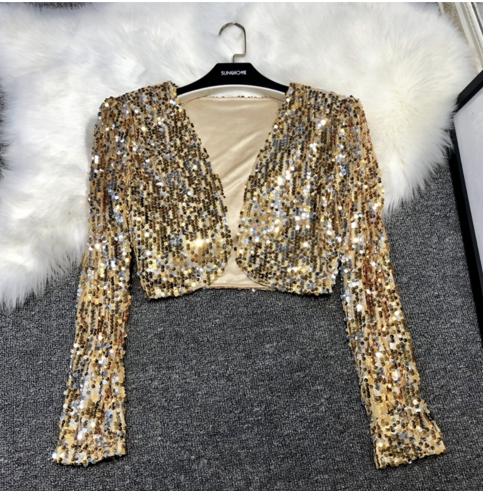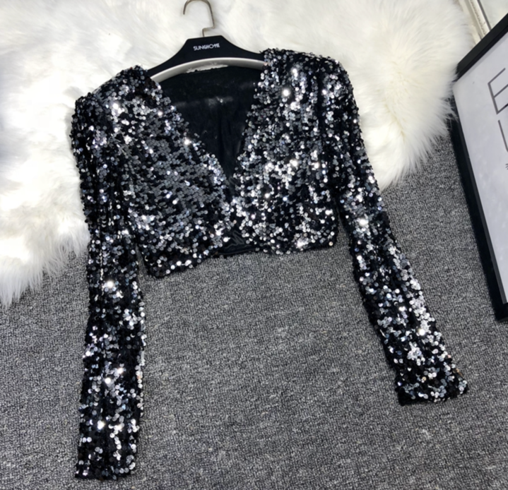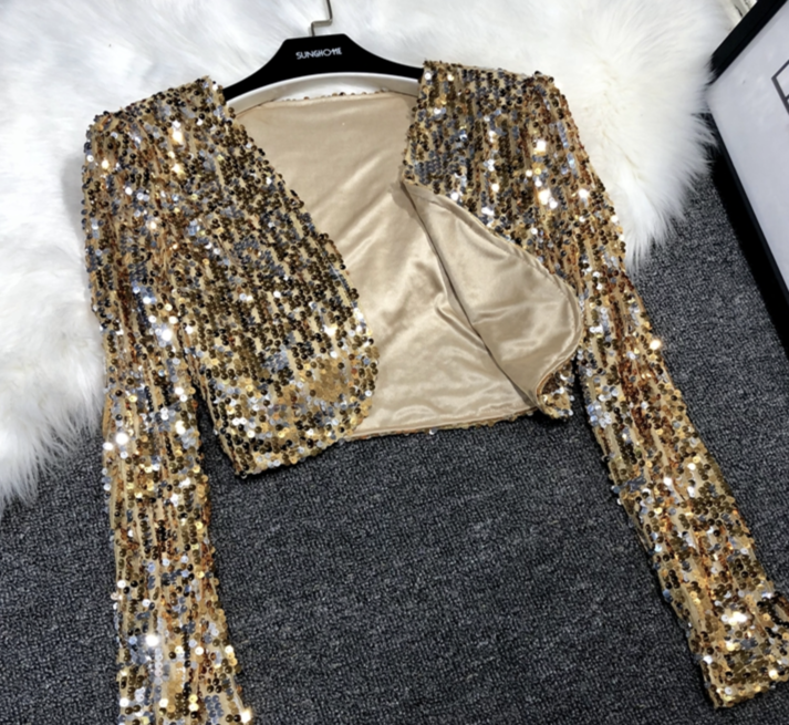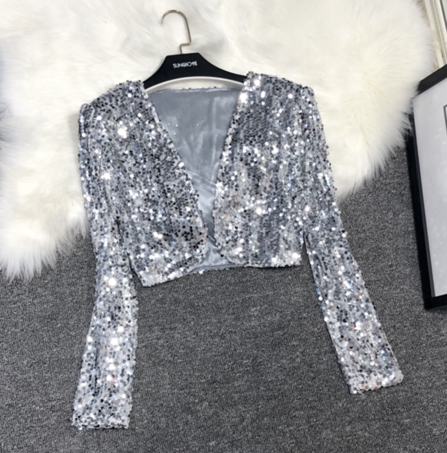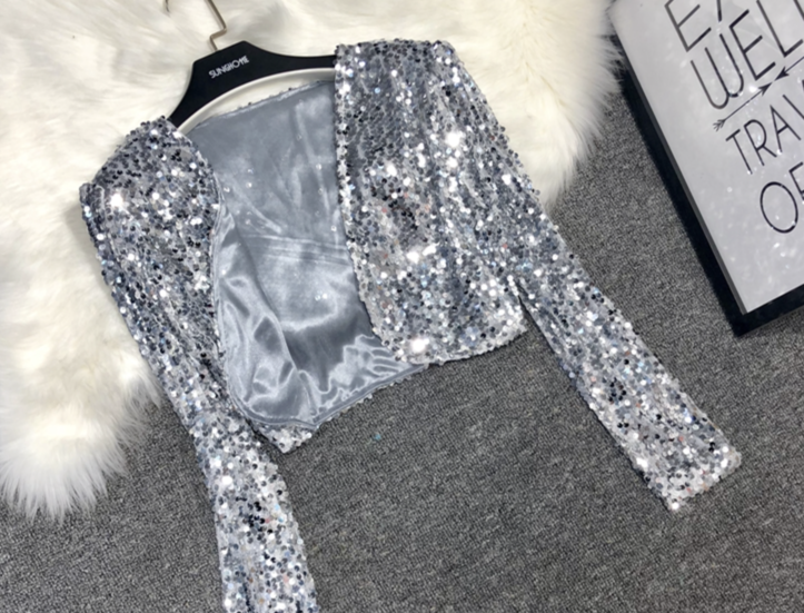 Street Fashion Joker Short Edition Sequins Small Suit Sparkling Bead Piece Suit Small Jacket