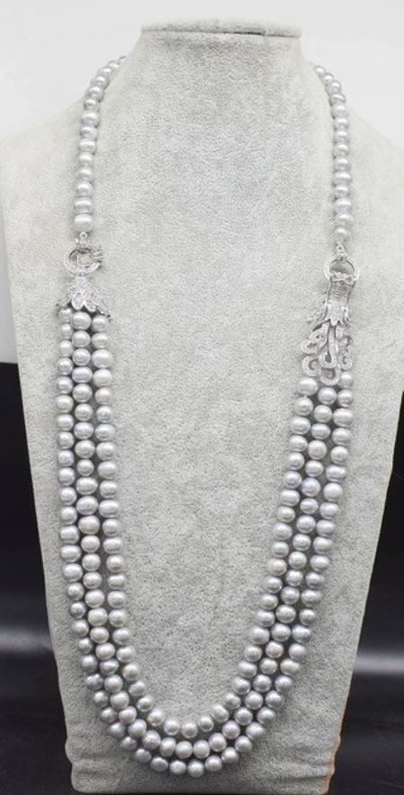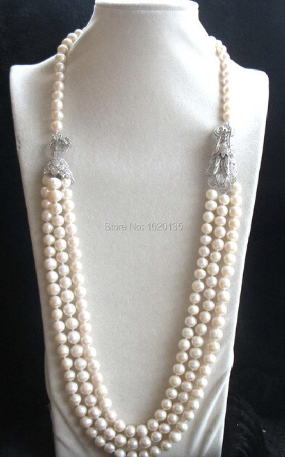 3rows freshwater pearl near round 8-9mm necklace 28-30inch and dragon clasp
