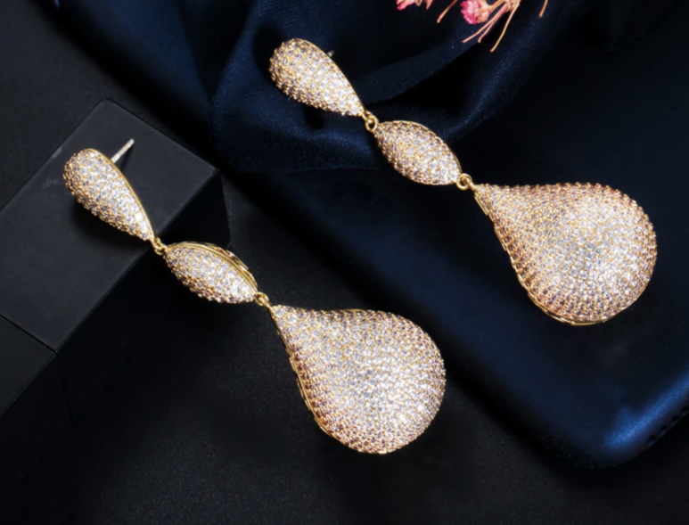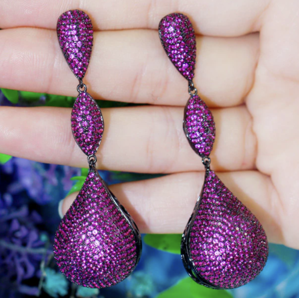 Luxury Big Water Drop Disco Balls Micro Pave Hot Pink Red Cubic Zircon Long Earrings