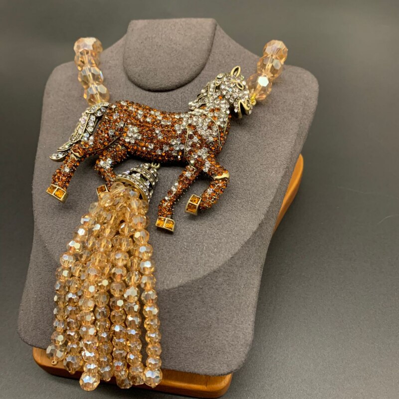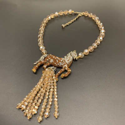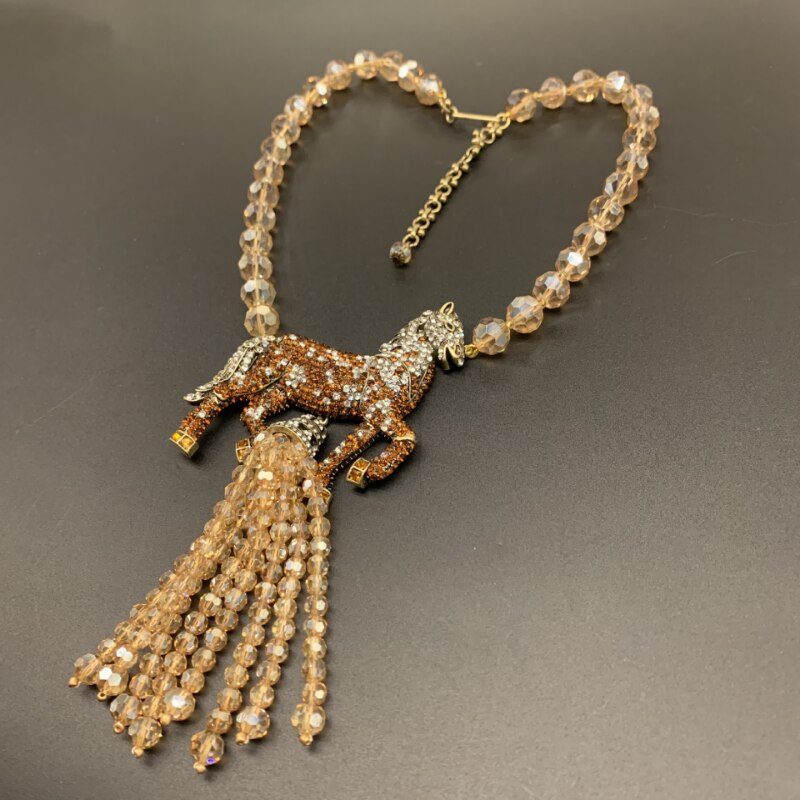 Crystal Beaded Zircon Horse Tassel Necklace