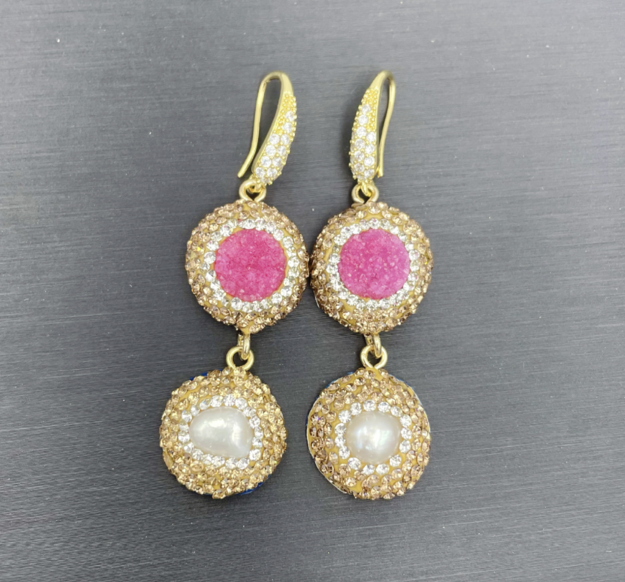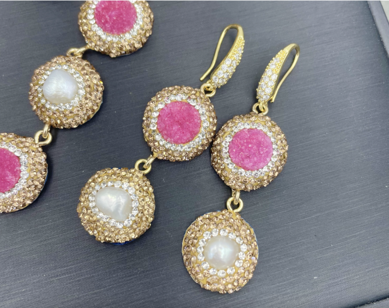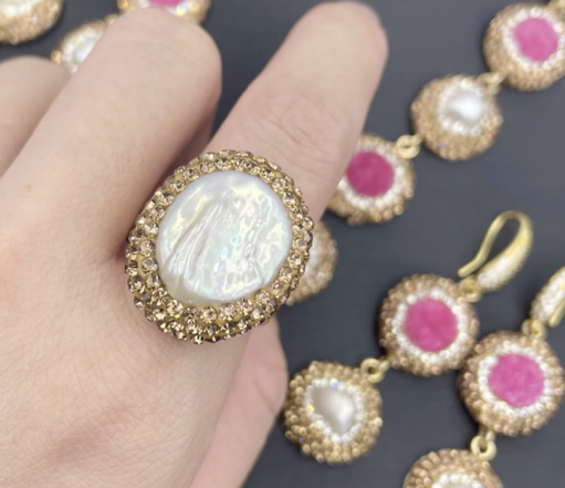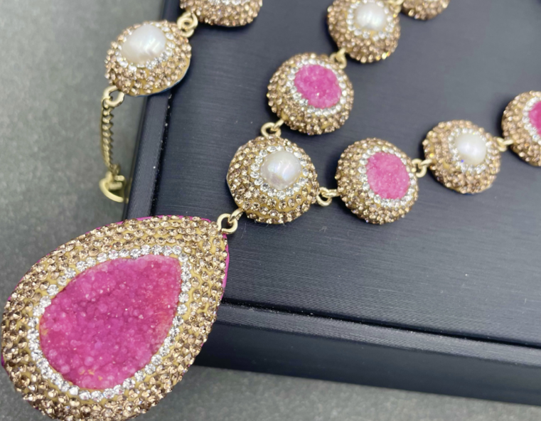 Natural crystal stone necklace high-grade exquisite Baroque hand-inlaid pearl set jewelry women