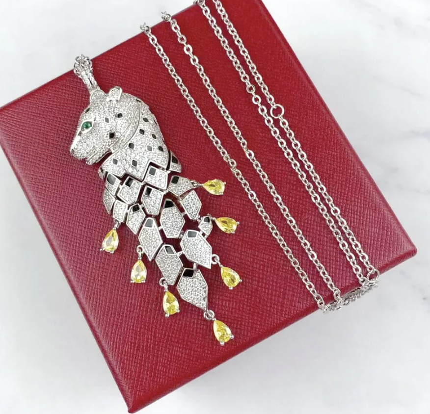 Black Spot Leopard Head Tassels Pendant
