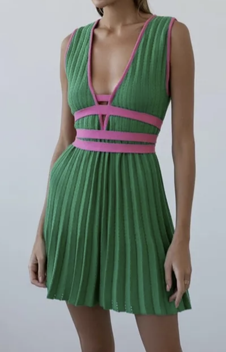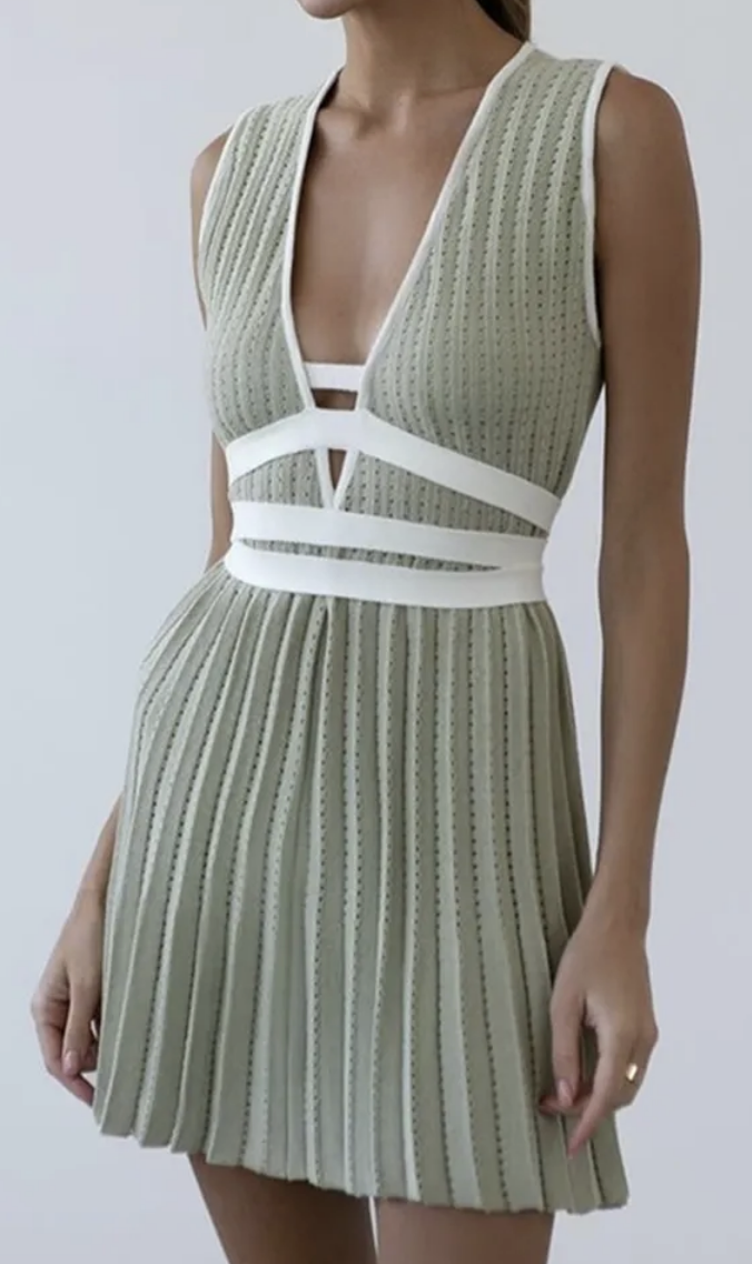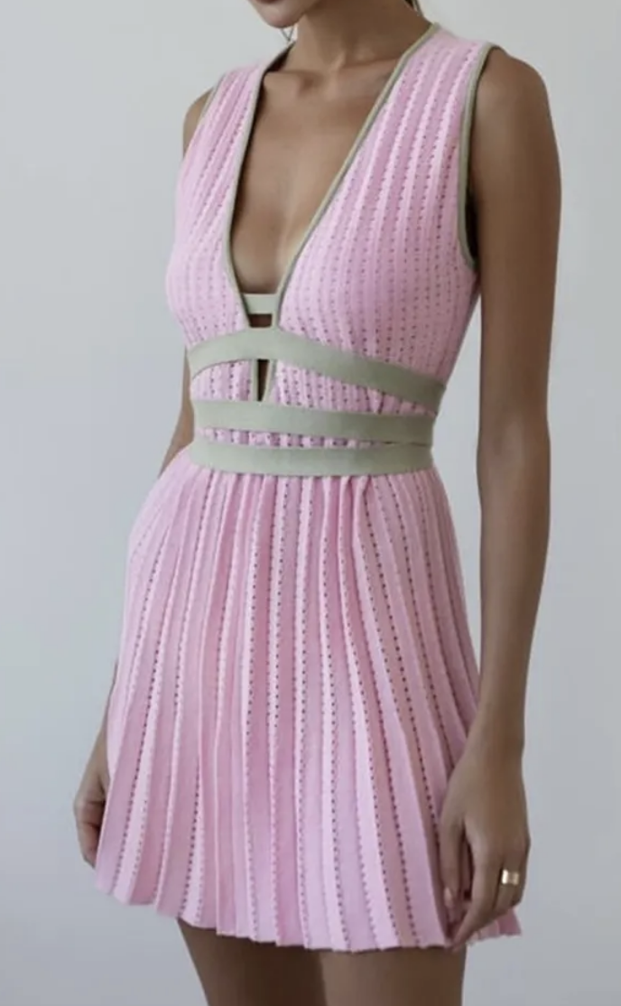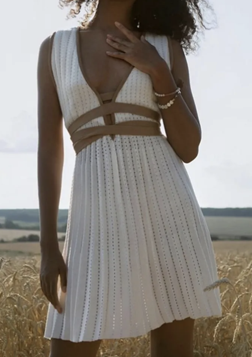 Deep V-Neck Knitted Women's Dresses High Waist ONE SIZE