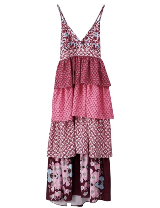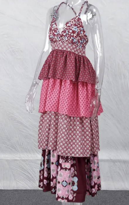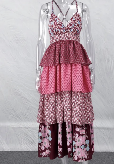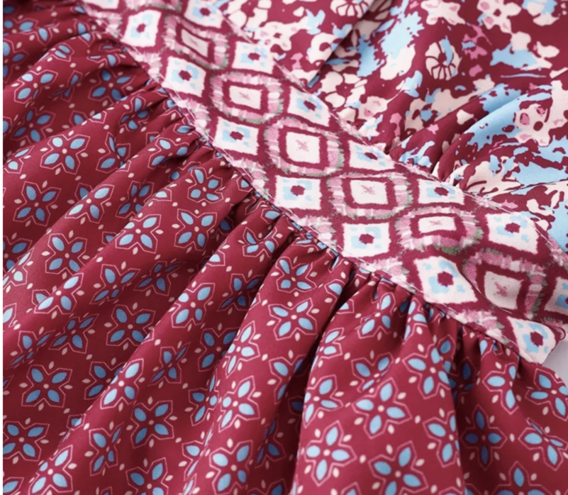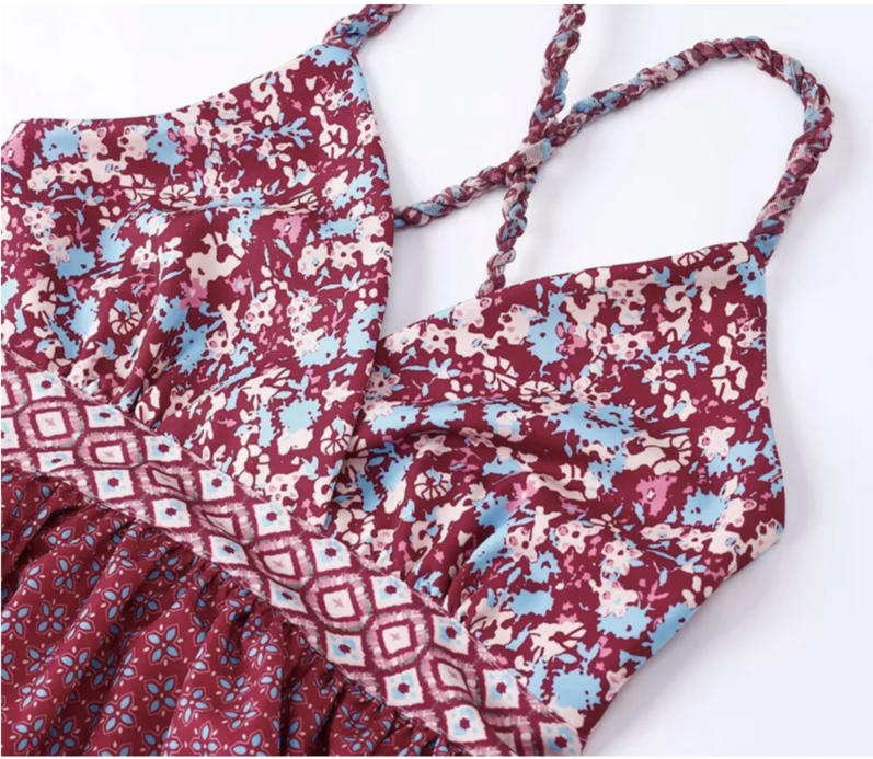 Vintage Printed Bohemian Women's Patchwork Suspender Dress