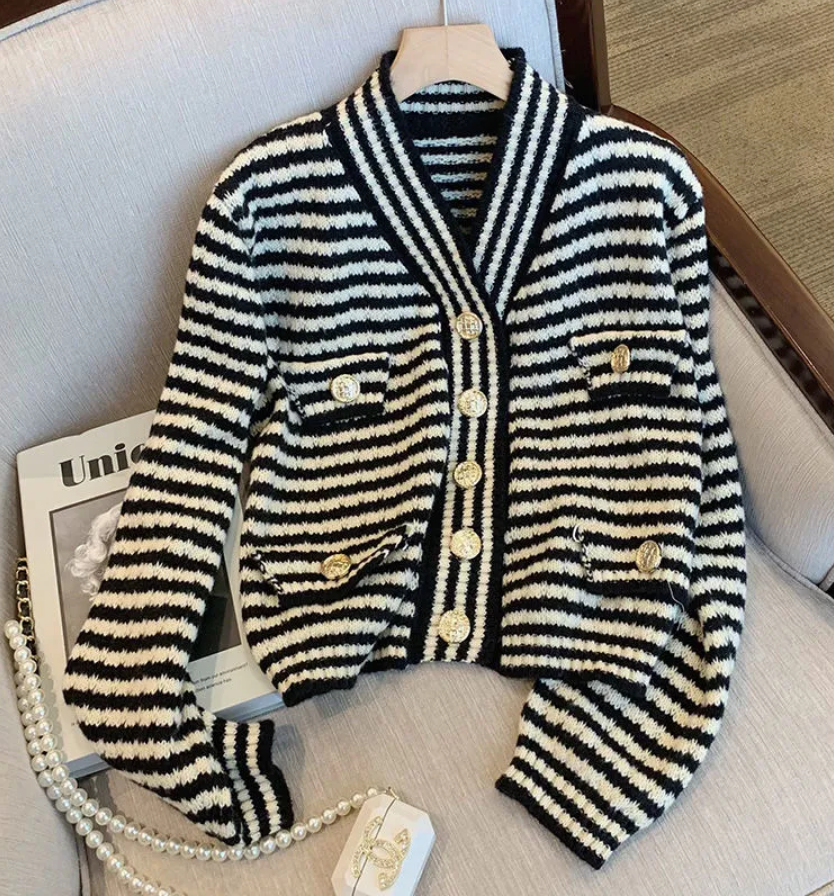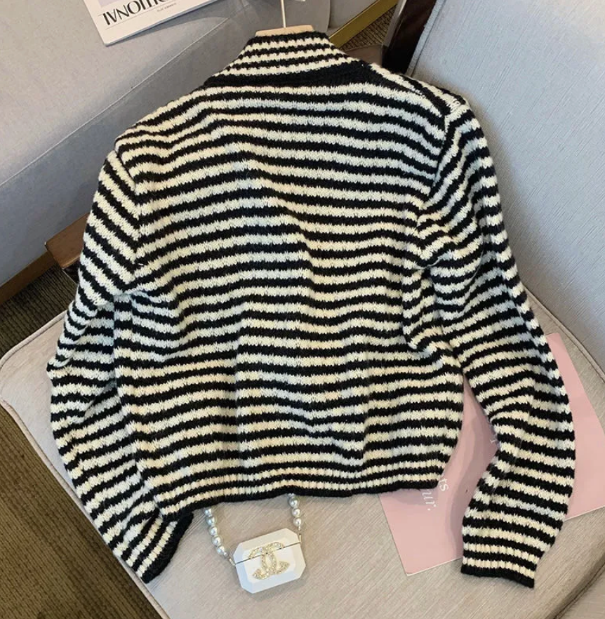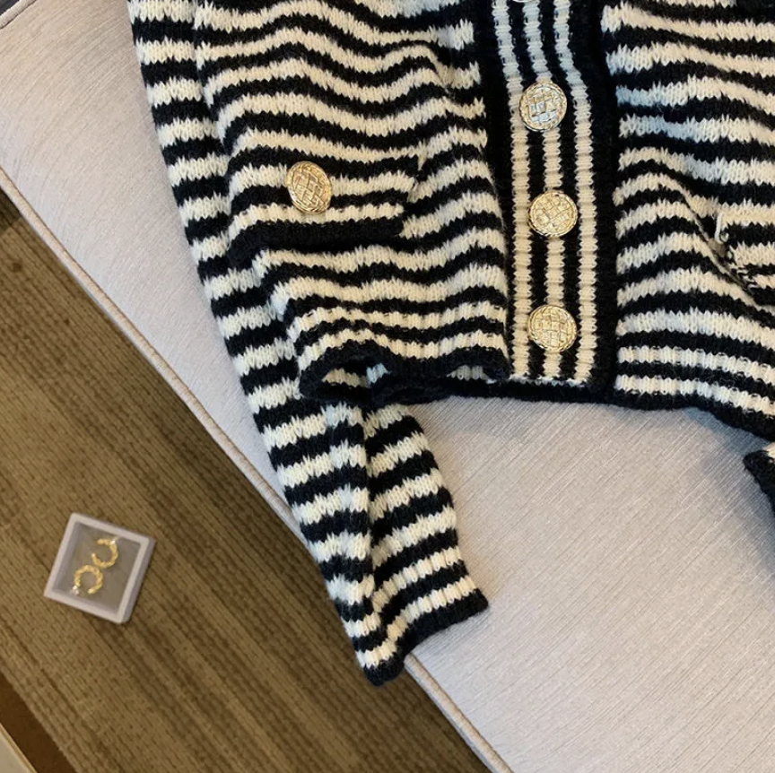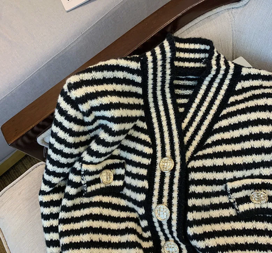 Retro Port Flavor Striped Color Knit Cardigan ONE SIZE