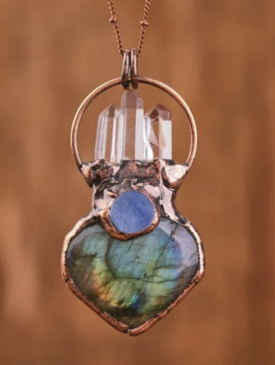 Heart Flash Labradorite Antique Bronze Plated Pendant