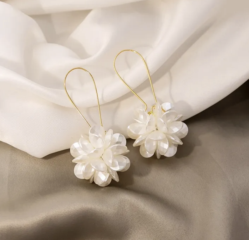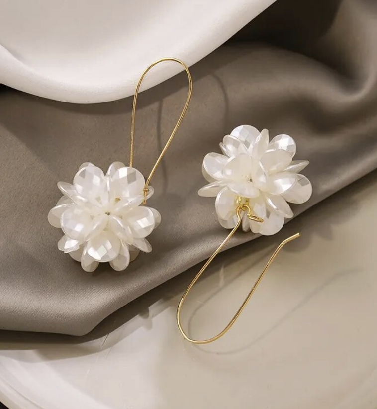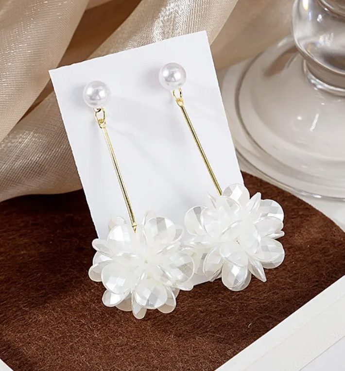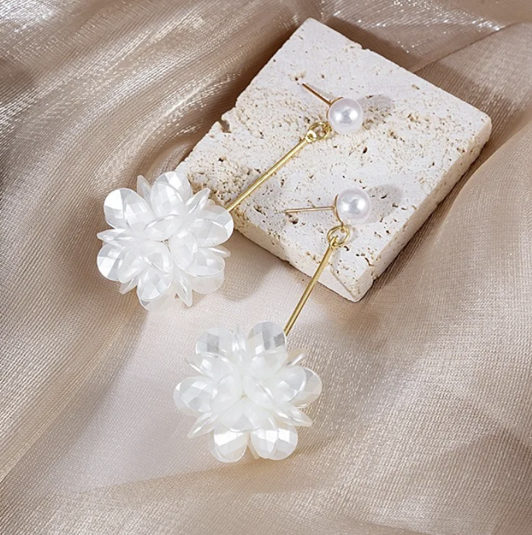 Wedding Pearl Beaded Flower Earrings