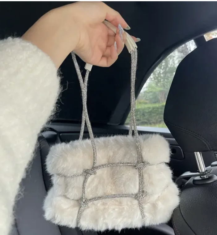 Faux Fur Shimmery Strap Bag