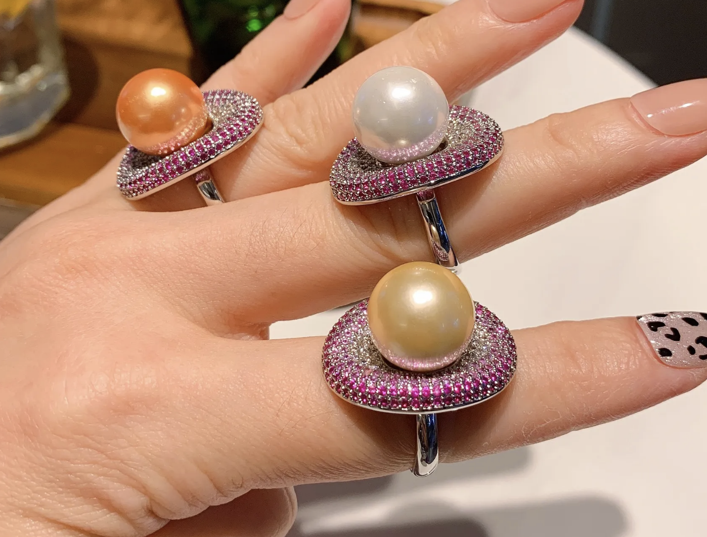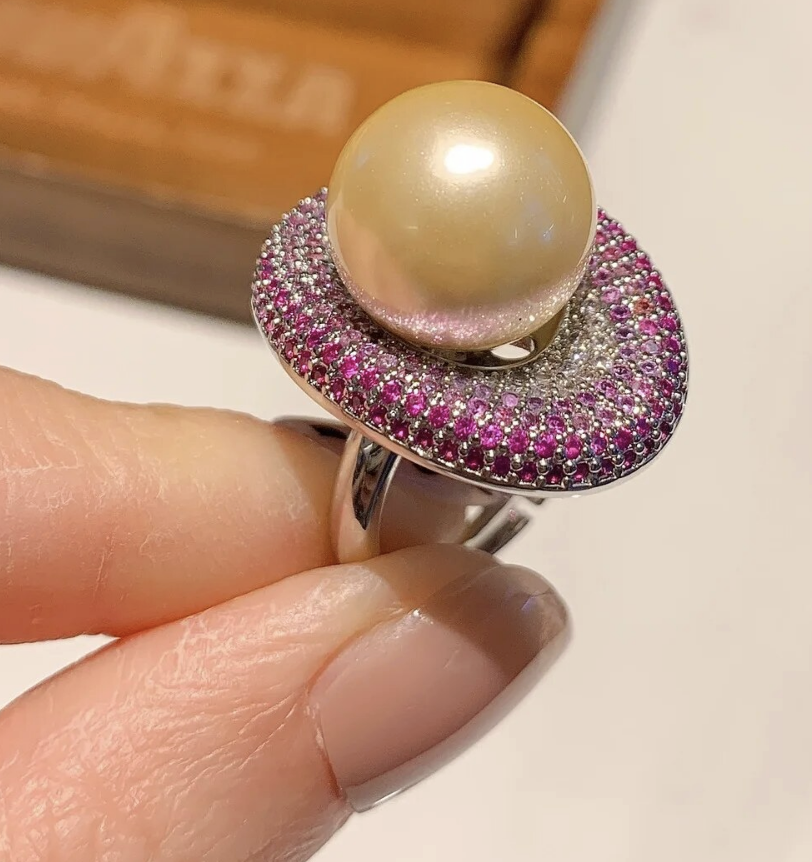 Big Pearl Cubic Zirconia Love Oval Adjustable Ring adjustable
