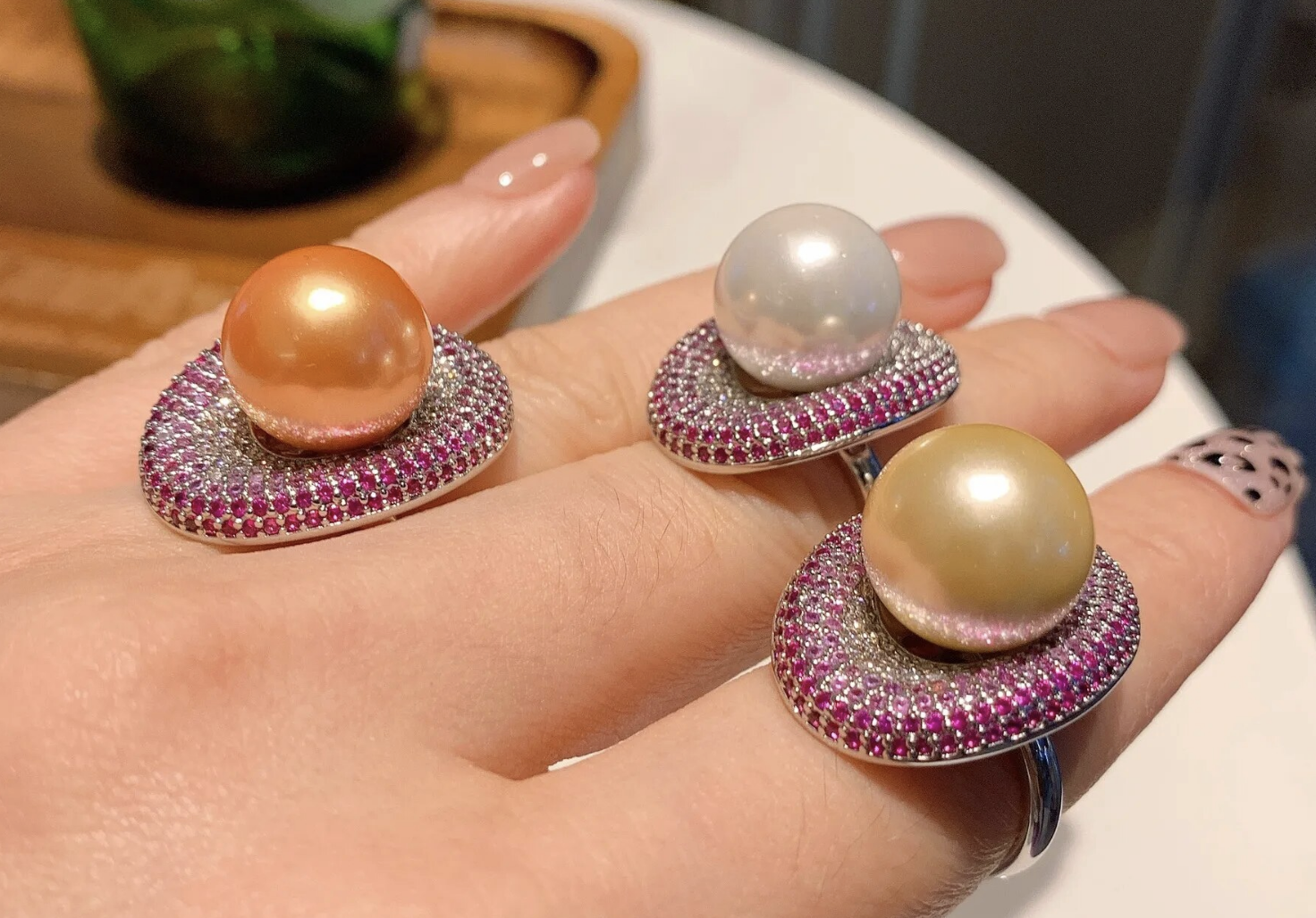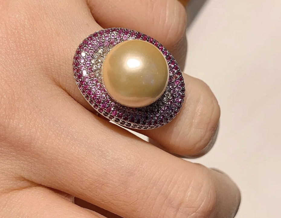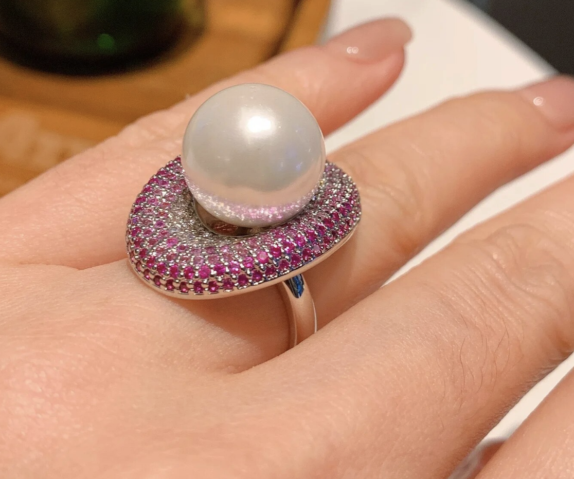 Big Pearl Cubic Zirconia Love Oval Adjustable Ring