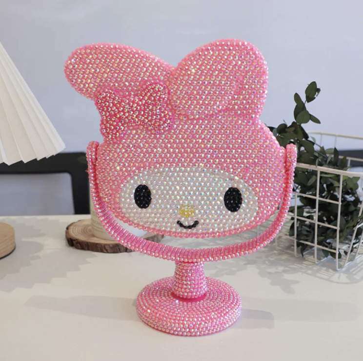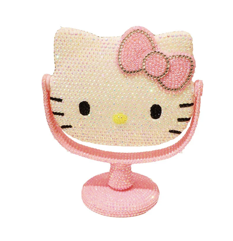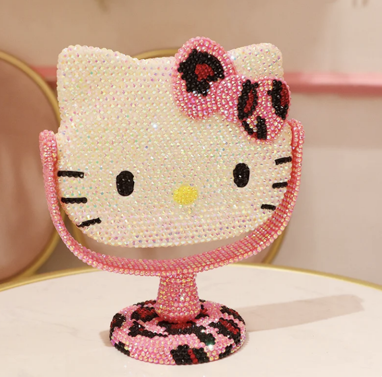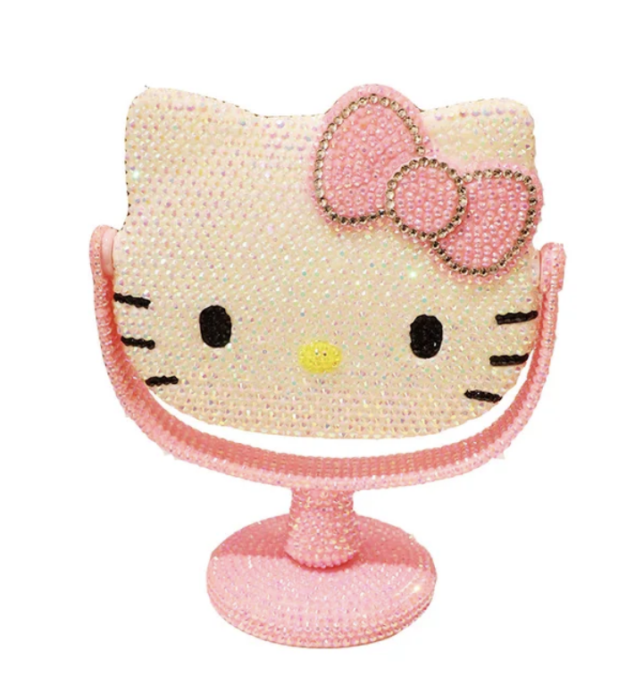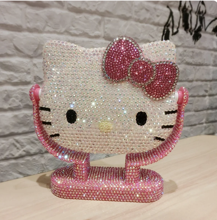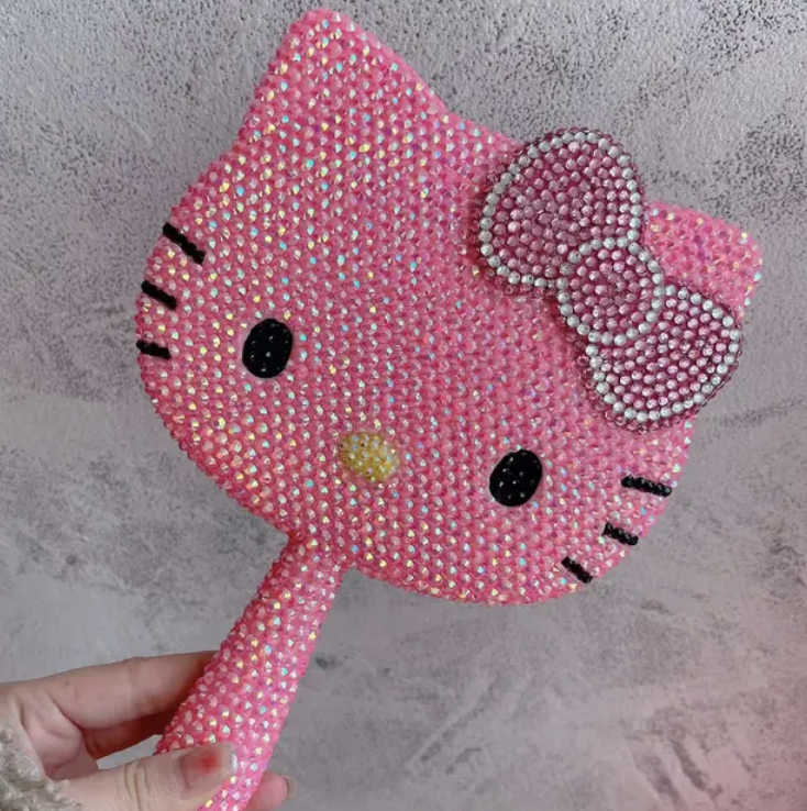 cute hello cat mirrors pink and sparkly hand held or vanity