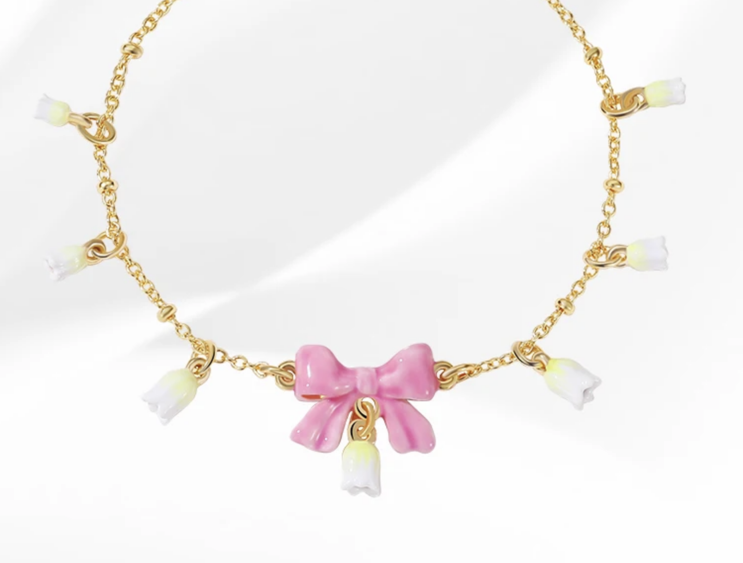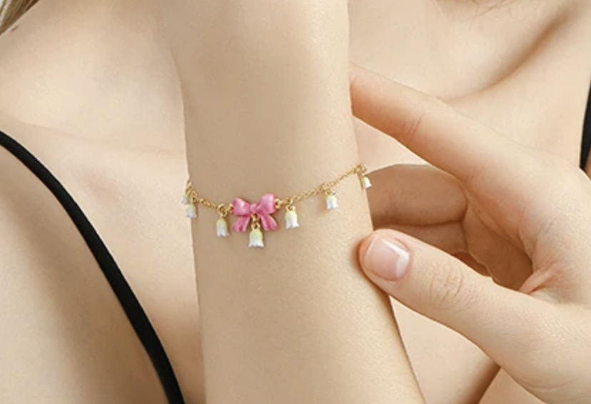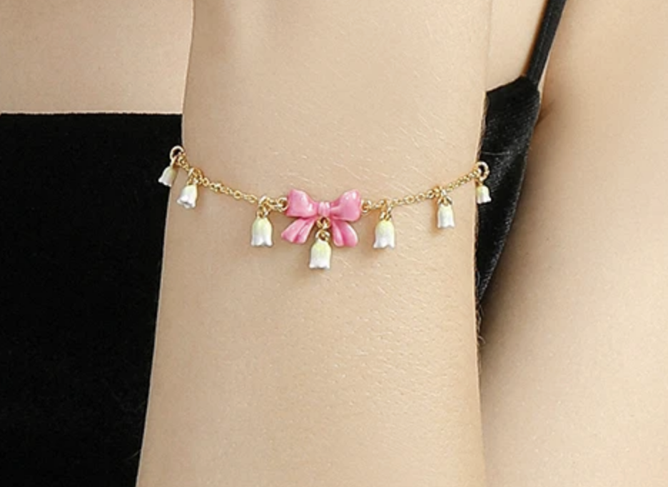 Cute Pink Valentines Day Bow Bracelet 18 K clad