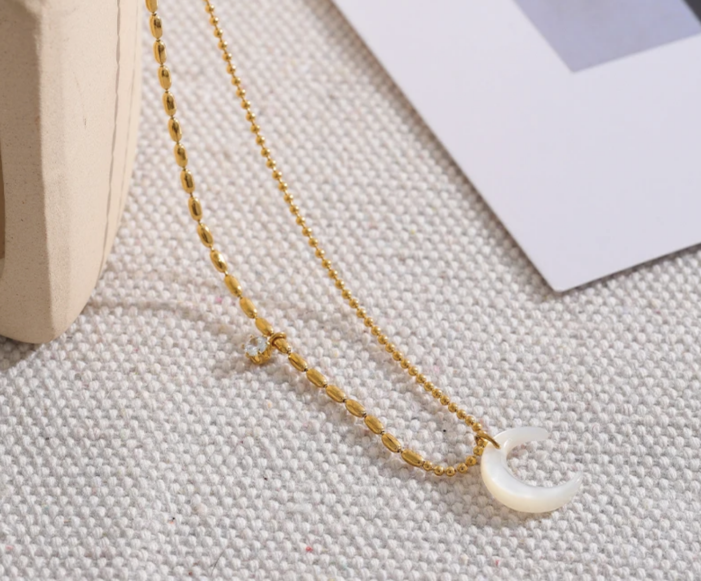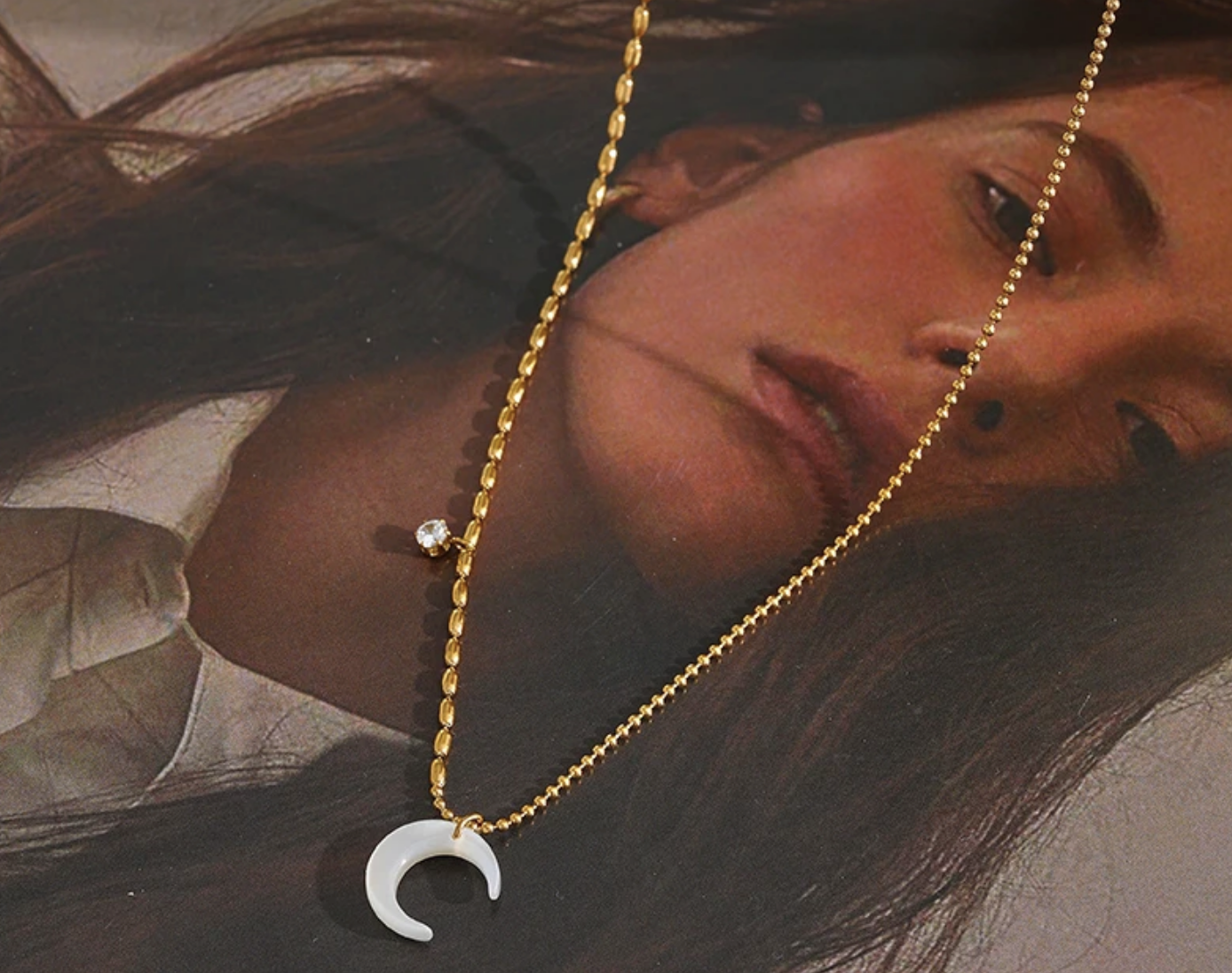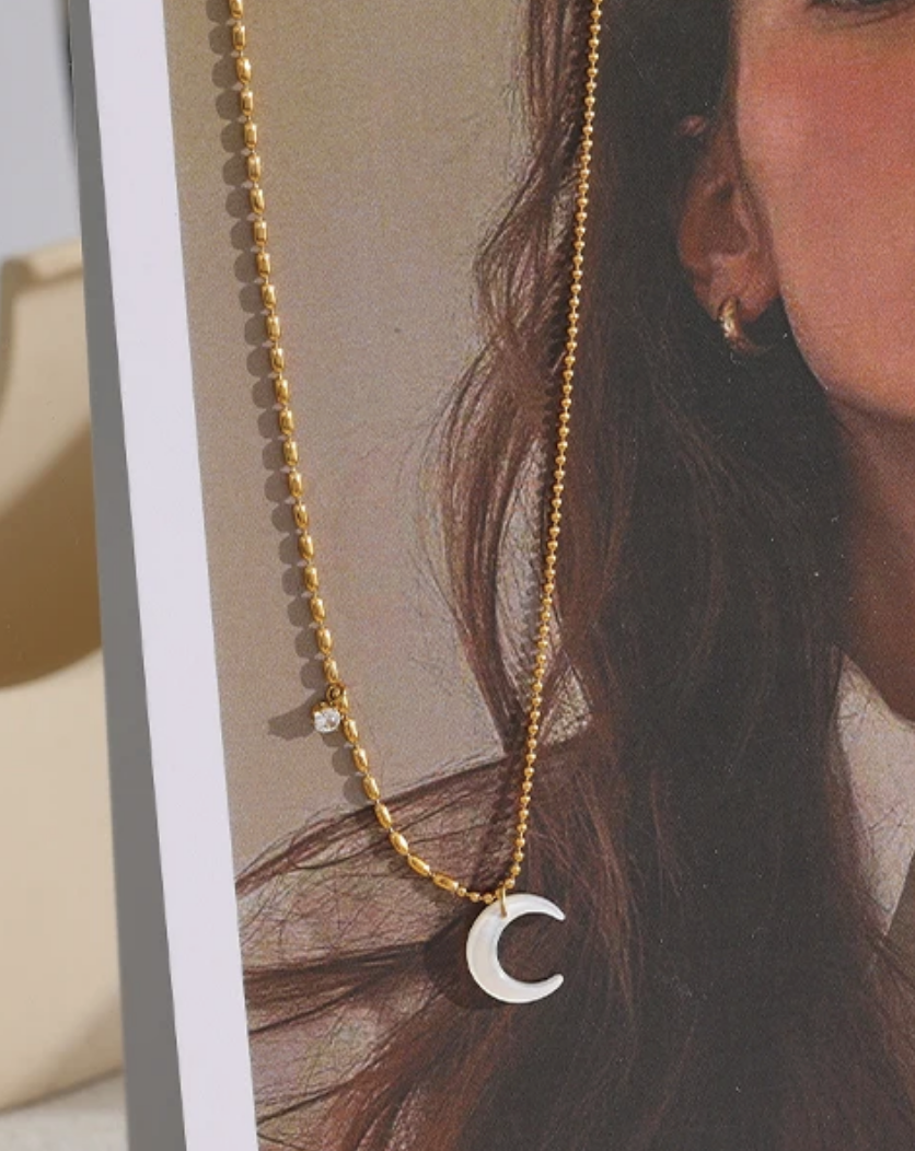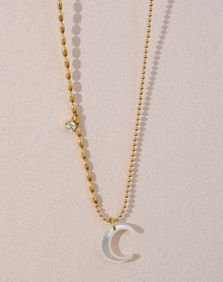 Moon Steel Necklace CZ