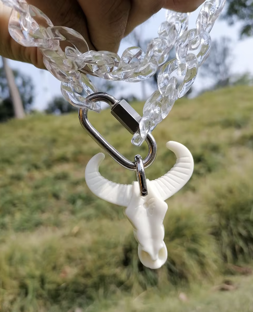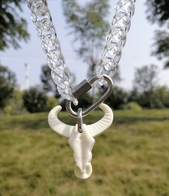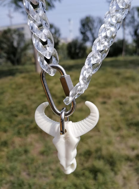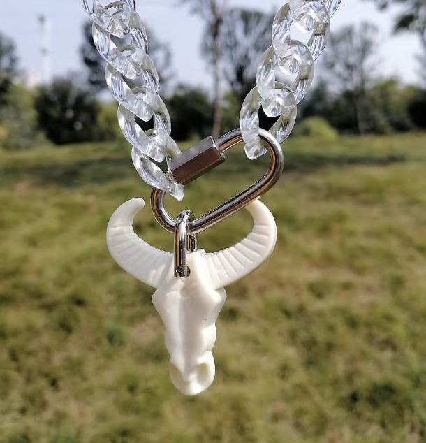 Cute Acrylic Skull Necklace chunky Carabiner costume stone flintstone